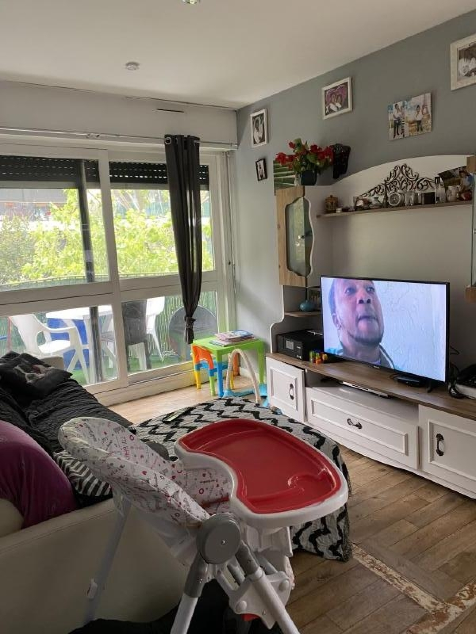 GRIGNY CENTRE VILLE: quartier GRIGNY 2, dans copropriété au 5ème étage avec ascenseur, appartement 3 pièces de 67m² de surface habitable avec séjour de 25m² offrant vue sur jardin, composé de 2 chambres et un balcon.